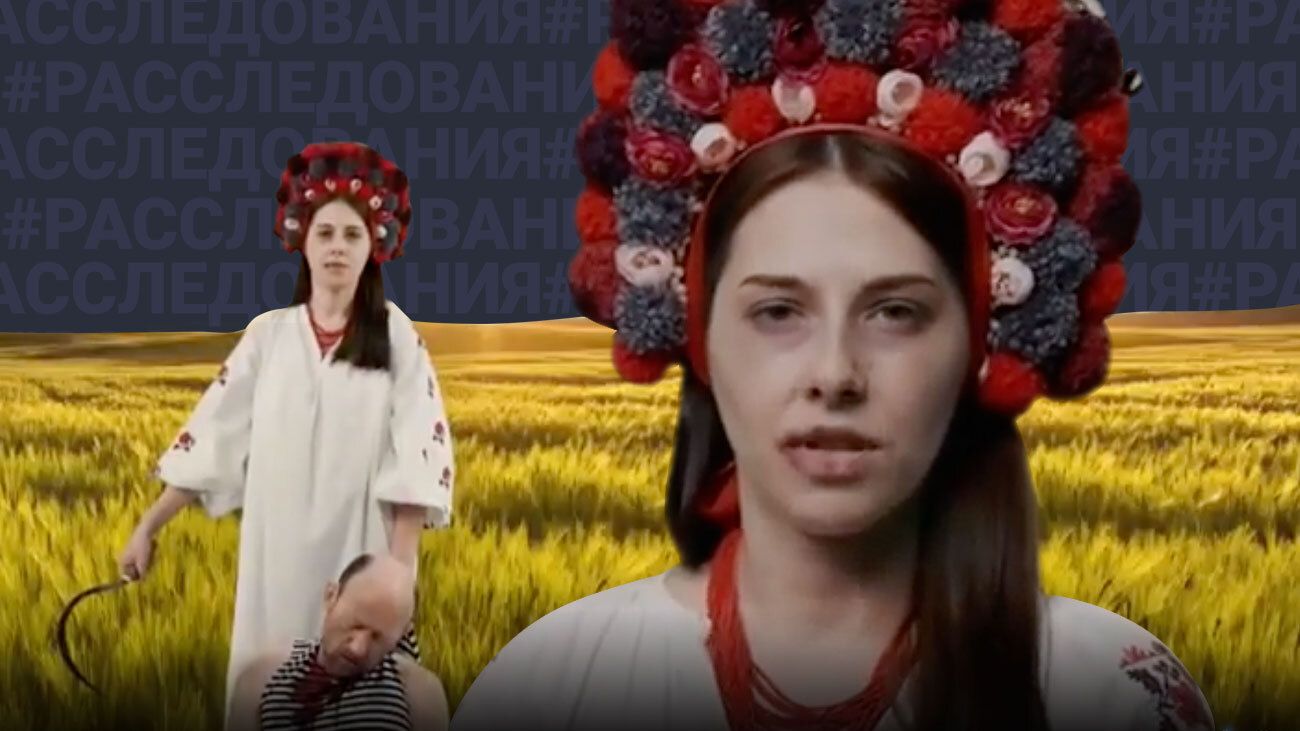 Фрагменты из видео львовской актрисы Андрианны Курилец, весна 2022 года. Её героиня серпом «перерезает горло» мужчине, изображающему российского солдата. Видео кончается словами: «добро пожаловать в ад». В России на неё завели дело по статье о «возбуждении ненависти либо вражды».Источник: life.ru
