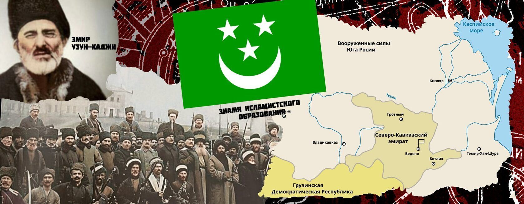 Осенью 1919 года было провозглашено исламистское государство Северо-Кавказский эмират, которое вело против русских «белых» «священную войну». Во главе исламского государства стоял дагестанский лидер эмир Узун-Хаджи, отряд которого ещё в 1917 году совершал нападения, сжигал селения и грозил отсечением головы неугодным. Эмират был провозглашён самостоятельной шариатской монархией, но под протекторатом мусульманского Халифа — турецкого султана.