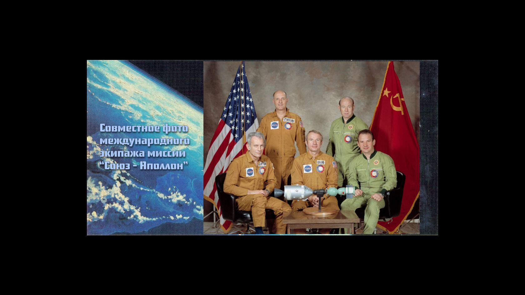 Первая международная встреча в космосе была наполнена символическими событиями: обменом национальными флагами, торжественной передачей флага ООН от космонавтов астронавтам, которые позже передали его в Организацию Объединенных Наций на вечное хранение.