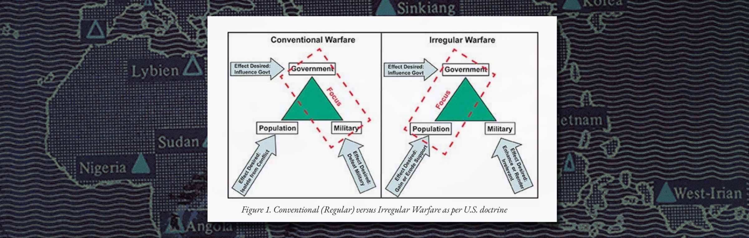Авторы выделяют пять форм иррегулярной борьбы: FID (иностранная внутренняя оборона), COIN (контрповстанческая операция), CT (контртерроризм), UW (неконвенциональная война), SO (стабилизационные операции).