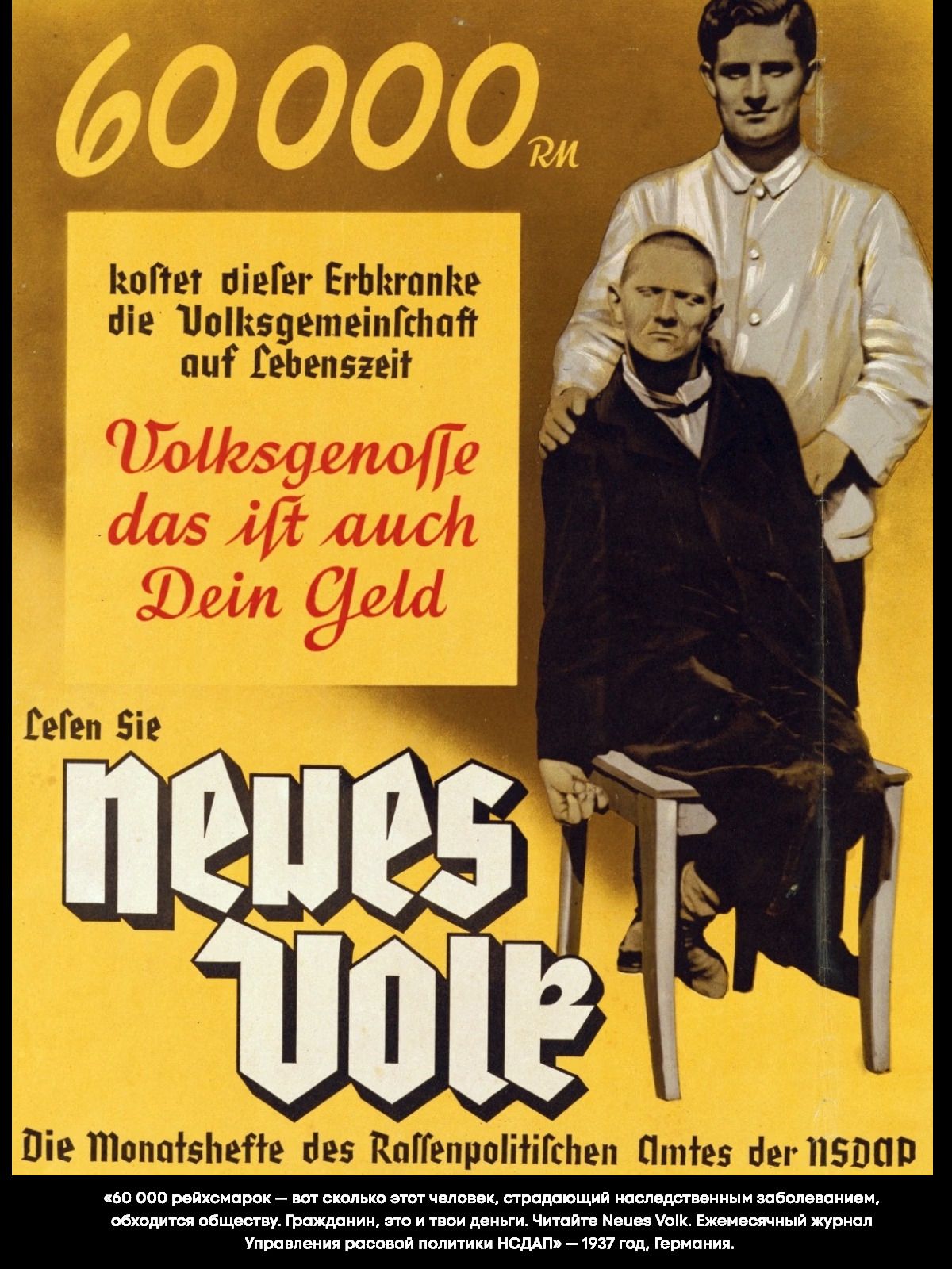 Таким образом, немецкое общество, поделённое на движимые взаимной ненавистью классы, активно искало не только виновных, но и тех, на ком можно будет сэкономить, причём неважно, кто будет у власти: коммунист, нацист или либерал. Деньги стремительно кончались, а потому обществу и государству был нужен максимально безобидное подставное лицо: без достаточного представительства во власти и, чтобы не имел сил для сопротивления любому режиму в Германии, который в первое время по определению первое время всегда будет слабым и шатающимся. Нацисты нашли такой слой населения — больные люди. Но как им удалось убедить общество в том, что подобная «экономия» возможна? На помощь пришли новые, очень модные в профессиональных кругах, идеи.