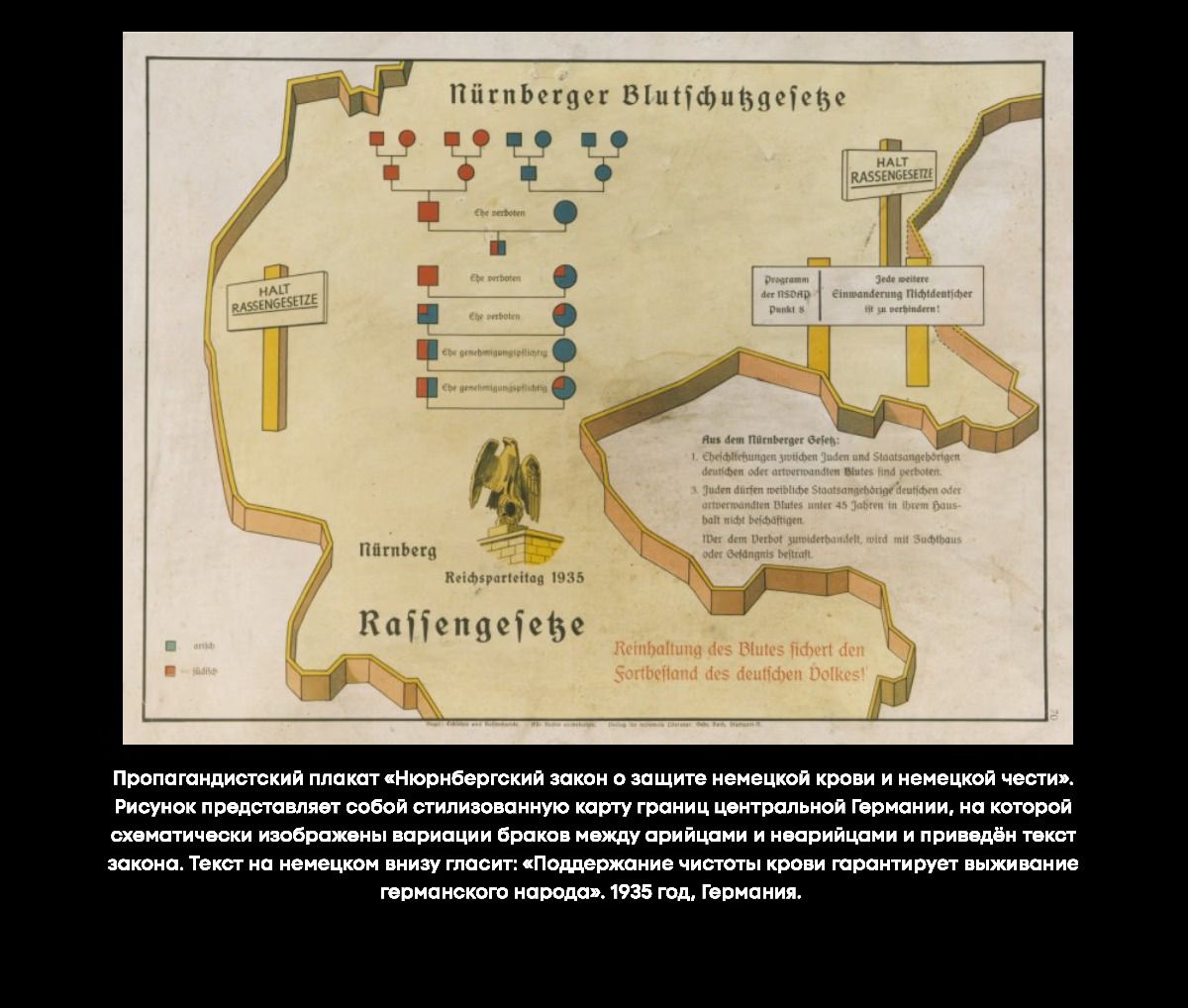 Гераклит говорил: «Война — отец всех, царь всех», и, в случае с нацистами, это утверждение крайне верно. Выйдя из пекла и унизительного поражения Германии в Первой мировой войне, тогда ещё называемой «Великой войной», не менее катастрофического экономического кризиса и постоянных уличных боёв, нацисты взошли на немецкий железный трон с твёрдым пониманием, что они никогда не отдадут власть добровольно и готовы для этого воевать с собственным народом. После разрушительной войны людям нужно было дать веские причины, чтобы терпеть войну внутри страны против откровенно беззащитных людей, но и на это у нацистов нашлись аргументы и идеи. Уже после применения этих идей Германия стала по Гераклиту царством всего — обществом, рождённым войной и рождённое для войны.